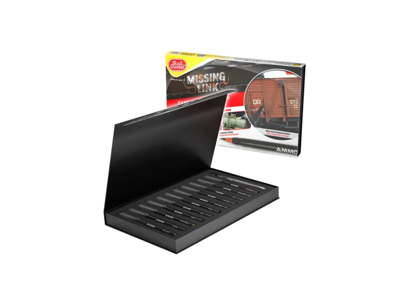 Se sadou Missing Link od AMMO Rail Center můžete překlenout mezeru mezi lakováním a dokonalým zvětráváním – to vše bez airbrushe, sady štětců nebo složitého příslušenství! Tyto inovativní štětcové popisovače jsou speciálně navrženy pro přímou aplikaci efektů zvětrávání, nečistot a rzi na lakované povrchy. Rychlé, přesné a čisté – ideální pro nadšence do modelové železnice, kteří chtějí dosáhnout realistických výsledků s minimálním úsilím.