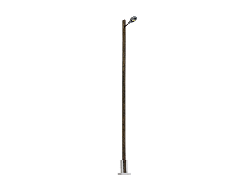 Univerzálně použitelné staniční světlo s pravým dřevěným sloupem. Vhodné i do průmyslových prostor. S jemnou kovovou paticí. Oválný tvar svítidla představuje model často používaného typu svítidla z produkce bývalého závodu VEB Leuchtenbau Leipzig (LBL). Bílé světlo původně vytvářely rtuťové výbojky a v tomto modelu je věrně reprodukováno pomocí bílých neonových LED. Hotový model.