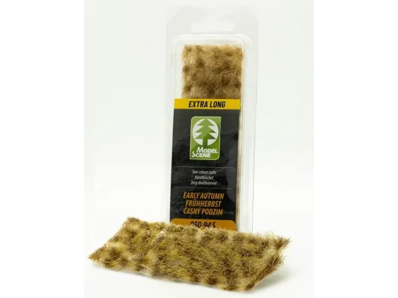 Dvoubarevné drny s kombinací středně dlouhých a extra dlouhých vláken (6,5 a 12 mm) umožňují snadno vytvořit živý, objemný a přirozený vzhled terénu. Jsou ideální zejména pro větší měřítka plastikového modelářství, ale skvěle se uplatní i na kolejištích ve velikosti H0 – například při znázornění křovin, vyšších trsů trav nebo bujné vegetace podél cest, tratí nebo v přírodních zákoutích.