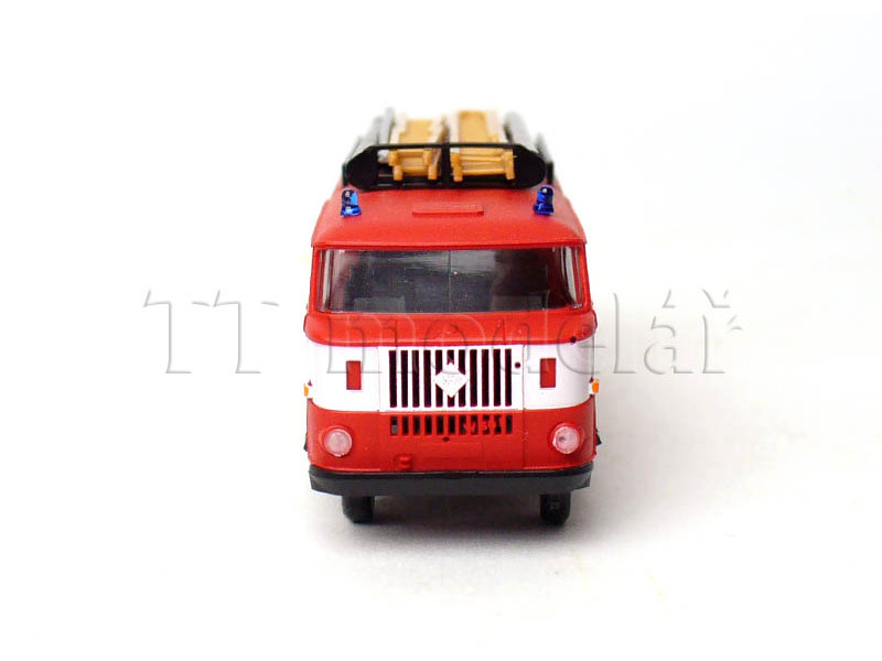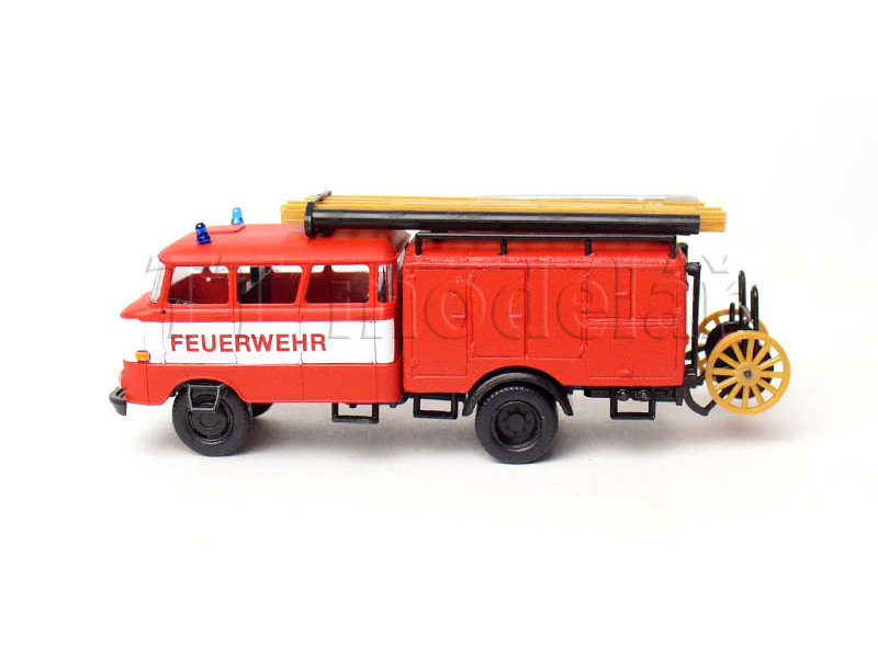 IFA W50L LF16, požární s bílým pruhem a s dřevěným kolem hadicového navijáku, TT, Haedl 127030