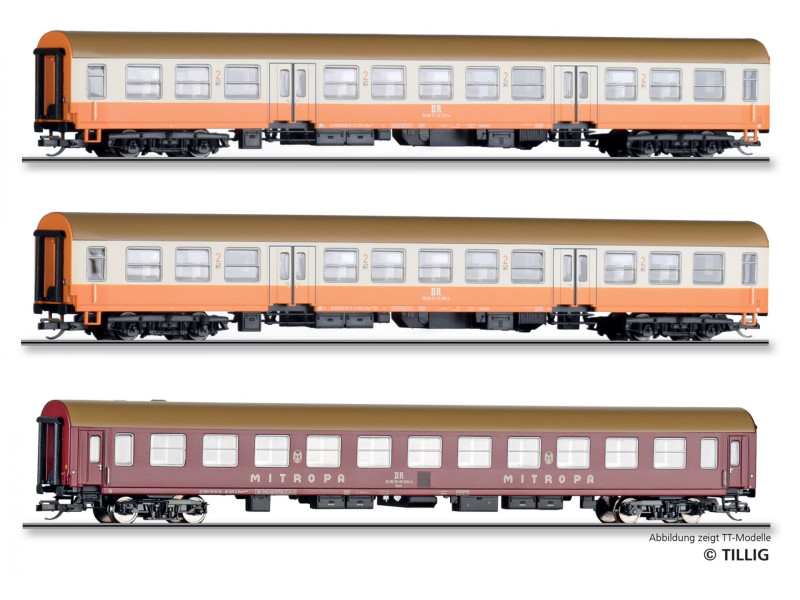 Set tří osobních vozů „Museums-Städteexpress Erfurter Bahnservice GmbH“, DR, VI. epocha, H0, jednorázová série 2026, Tillig 70062 E