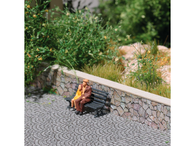 Zeď s detailním kamenným vzorem je univerzálně použitelná pro vymezení pozemků, terasování svahů, jako sedací stěna a mnoho dalšího. Základové zdi stabilních budov jsou zakončeny superrealisticky potištěnými dekorativními panely se vzhledem přírodního kamene.