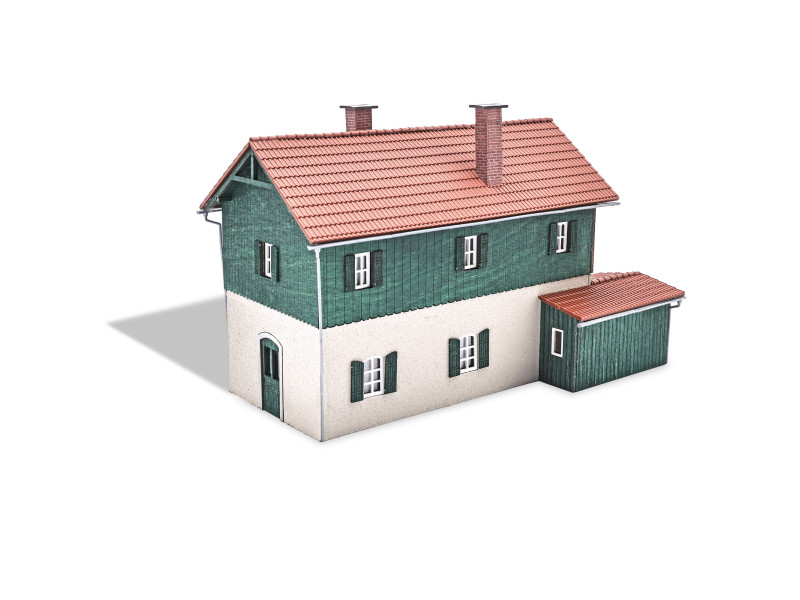 Model tohoto honosného domu pro železničního signalistu se často vyskytuje ve venkovských oblastech, a proto je univerzálně použitelný. Mnoho detailů, jako je fasádní obklad horního patra, přístavba, dveře, okenice a okenní rámy, je vyrobeno z pravého dřeva. Střecha, jemné okapy a svody jsou z plastu. Lze osvětlit pomocí Busch LED 5998.