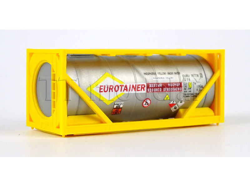 Kontejner nádržkový Eurotainer, kotel stříbrný,"žlutý fosfor", číslo xx7736, TT, Loco TK066