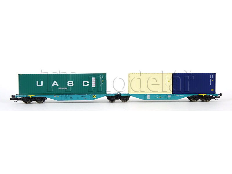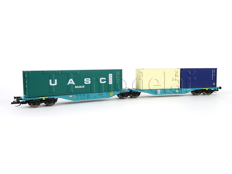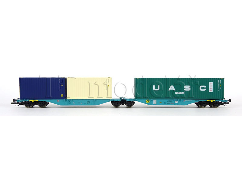 Kontejnerový vůz Sggmrs s nákladem 2 kontejnerů, WASCOSA, VI. epocha, TT, Tillig 18079