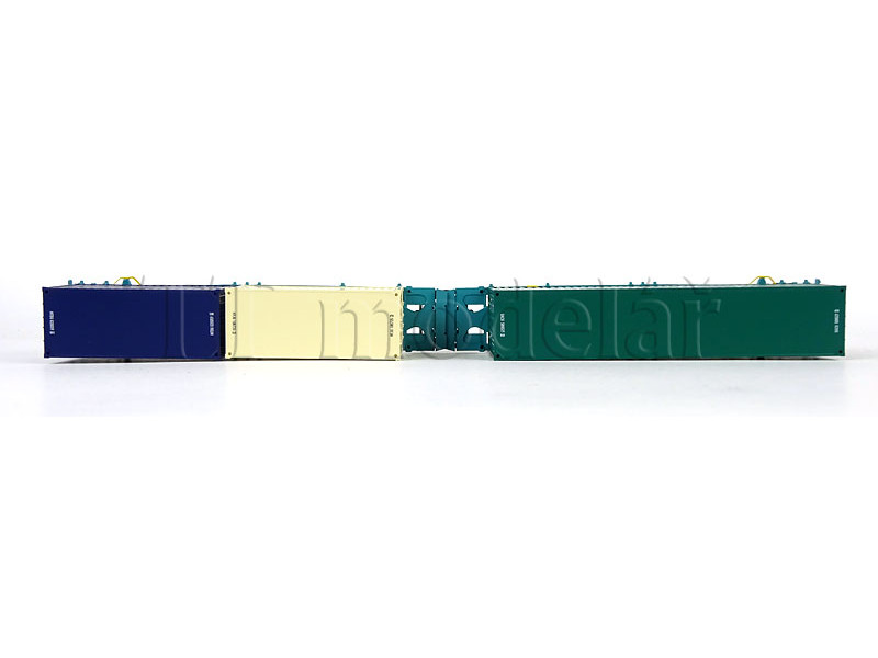 Kontejnerový vůz Sggmrs, TCDD, s nákladem dvou 20stopých a jednoho 40stopého kontejner, VI. epocha, TT, Tillig 18078