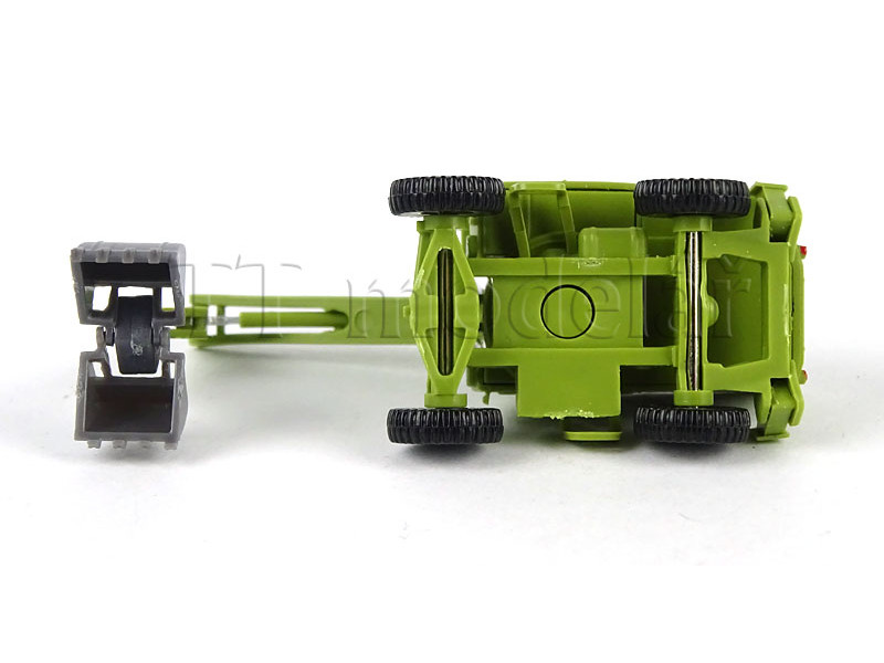 Model s plně pohyblivým drapákem a hydraulickou podpěrou na podvozku byl s láskou zrekonstruován v miniatuře. Nápisy a ventilační mřížky jsou vytištěny extrémně tenkými čarami, takže každá kosočtvercová část drátěné sítě je téměř viditelná pouhým okem. Dokonce i bezpečnostní texty a varování na kloubových ramenech jsou vytištěny s bezchybnou přesností, což modelům dodává plnou autenticitu. Robustní pneumatiky zvyšují jejich terénní vlastnosti a zajišťují, že nic nebrání použití v náročném terénu TT.