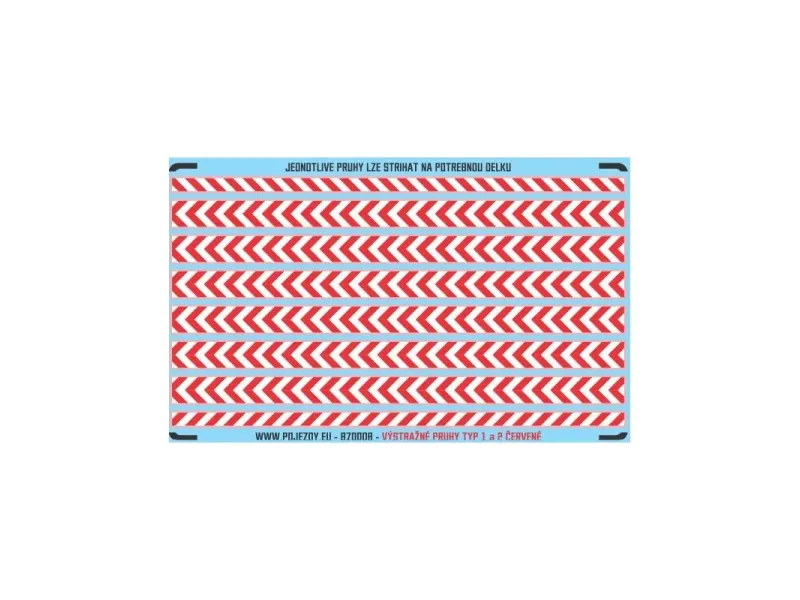 Obtisk s červenobílými výstražnými pruhy. Velikost plochy obtisku 79 x 44 mm (plocha s pruhy bez okrajů).