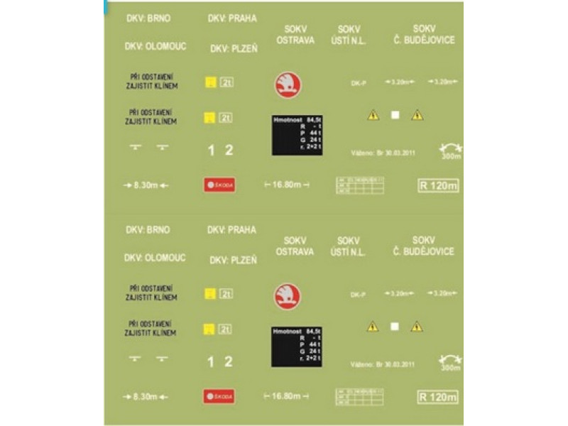 Každý aršík obsahuje různá čísla vozu, řadové označení nebo depa.