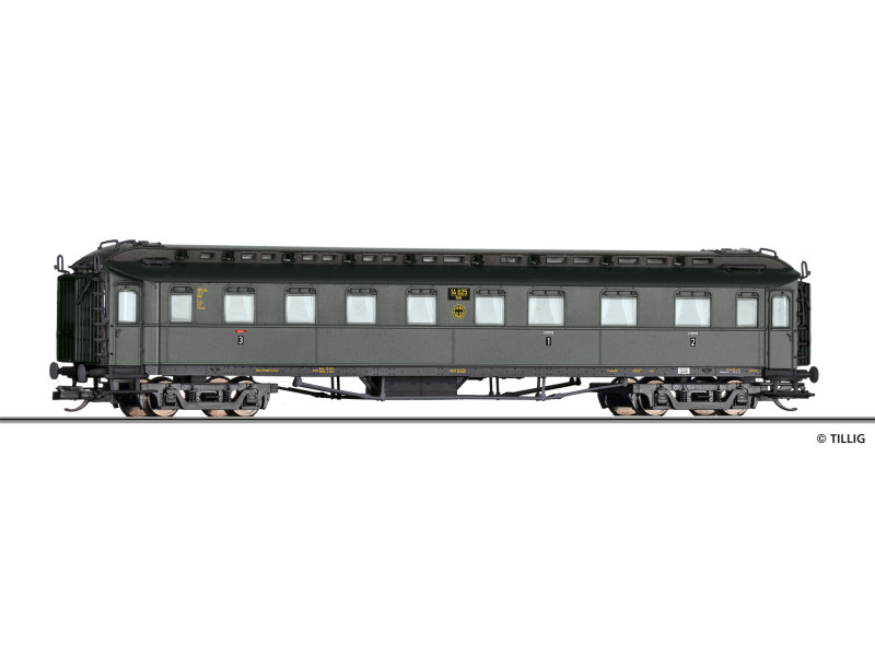Osobní vůz pruské konstrukce ABC4ü 1./2./3. třídy, DRG, II. epocha, TT, Tillig 12014