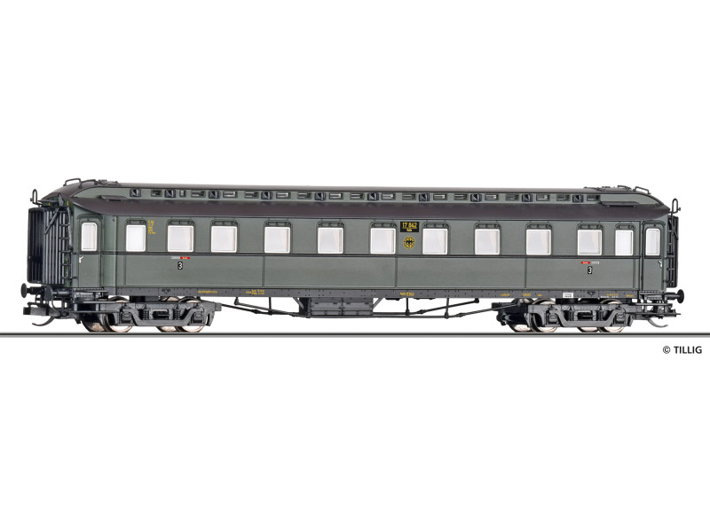 Osobní vůz pruské konstrukce BC4ü 2./3. třídy, DRG, II. epocha, TT, Tillig 12001