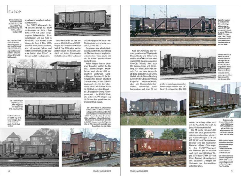 Ve druhé brožuře popisujeme vývoj po roce 1945: od prvních přestavěných vozů u DB a DR, přes vývoj moderních dvounápravových vozů s ocelovými skříněmi v celé Evropě, až po čtyřnápravové typy u DB a DR. Mezi klíčová témata patří vývoj od konce 40. let 20. století, otevřené vozy EUROP ve skutečné i modelové podobě, typy UIC St, Omm 52 a přeprava cukrové řepy, od oprav po novostavby u DB, podvozkové vozy DR, Mod, Reko, UIC St a použité vozy DR, Eaos a Eanos v Evropě.