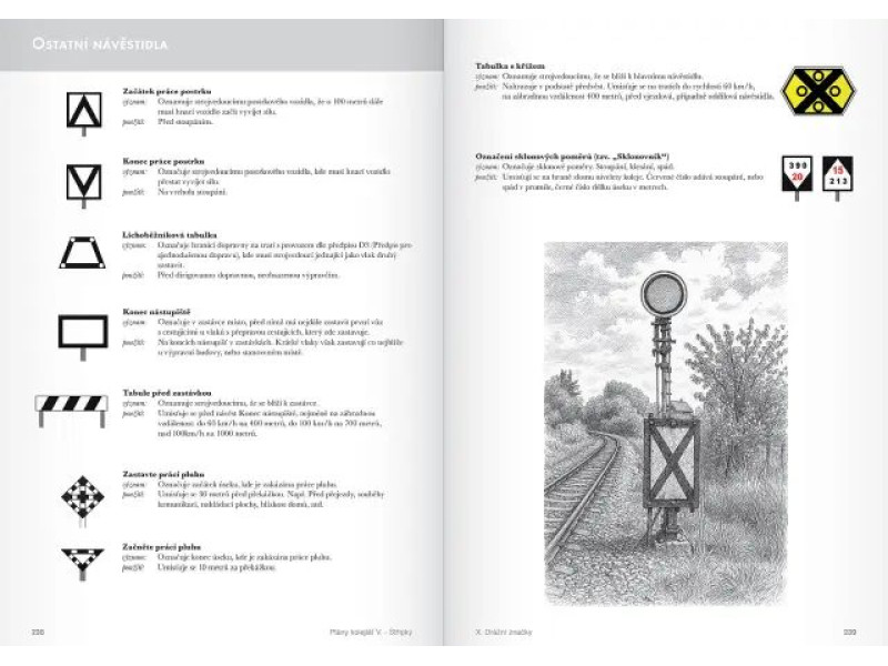 - kapitola o drážních značkách a tabulkách, které dodávají kolejištím realističnost,