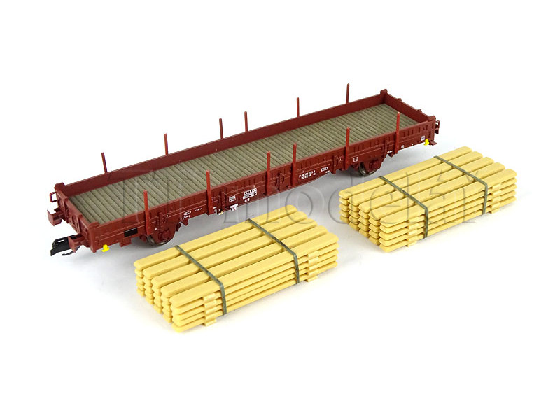 Plošinový vůz řady Ks, DR, ložený stohovanými prkny, IV. epocha, TT, Busch 31518