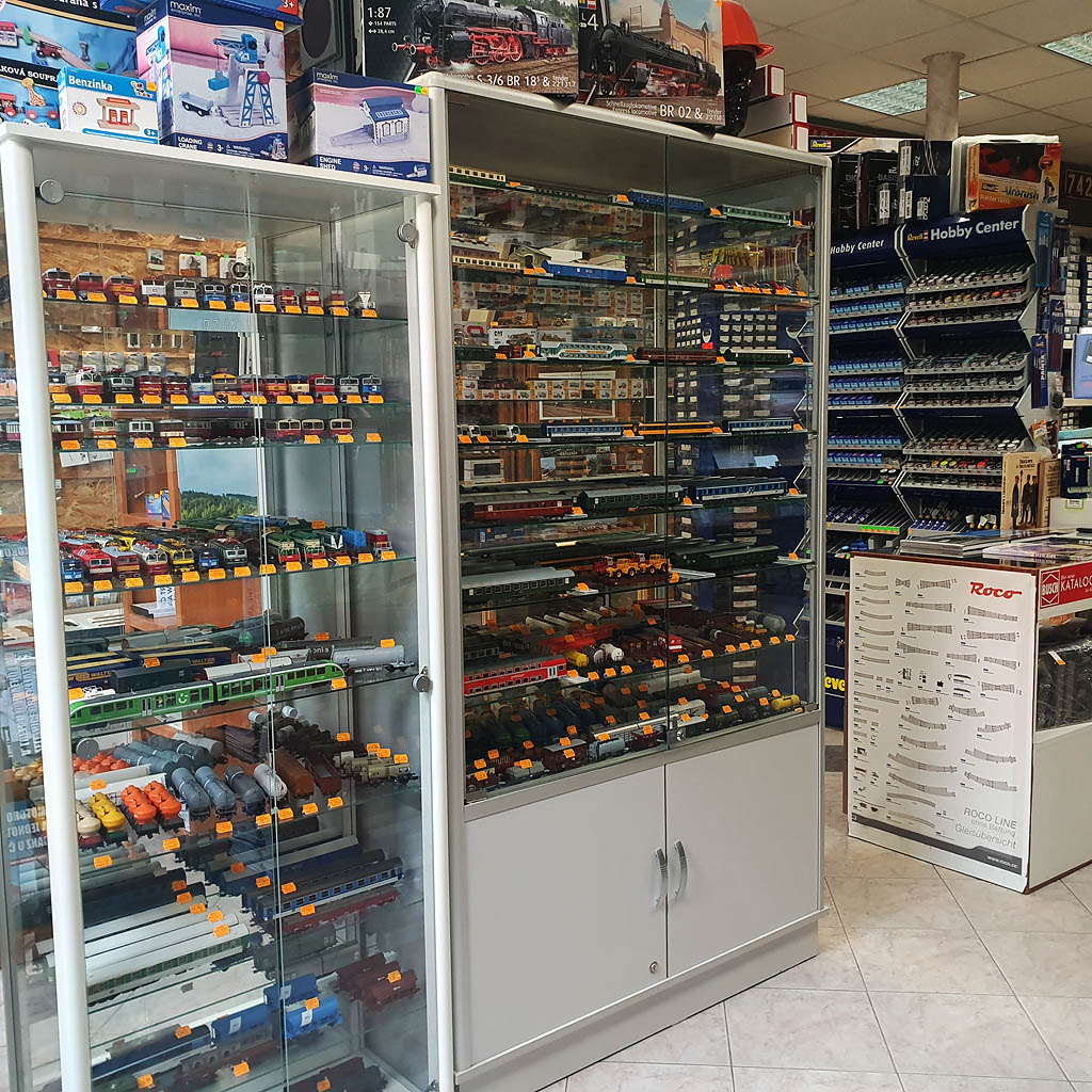 Naše boskovická prodejna je bohatě zásobena modely a modelářskými potřebami. Snažíme se držet skladem velké množství produktů z naší široké nabídky. V e-shopu aktuálně nabízíme více než 18 000 položek. K dispozici jsou železniční vozidla předních výrobců, stavebnice vozidel tuzemských firem či doplňky a příslušenství z české i zahraniční produkce. Valná část zboží je na prodejně vystavena, aby měl zákazník možnost si vše v klidu prohlédnout.