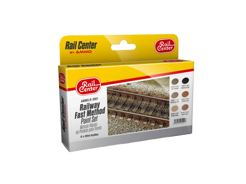 S barvami AMMO můžete rychle a s výjimečnými detaily vytvářet úžasné scenérie kolejí: ideální pro vytváření zrezivělých kolejnic, nečistot v kolejovém loži a typických nánosů podél trasy – přesně jako v reálném železničním životě. Ať už se jedná o hlavní trať, vlečku nebo posunovací nádraží, tato sada zajišťuje harmonické barevné přechody a realistický vzhled s minimálním úsilím.