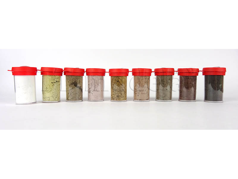 Práškové pigmenty je možné použít k patinování krajinných částí, vagonů a lokomotiv a to, jak suchým procesem, tak i s použitím vhodného pojiva. Dále je možné je použít k dobarvení modelovací hmoty a k probarvení imitace vody – prášek je vhodný do všech typů (Epoxid, PES, PU, na bázi vody, či nahřívací).