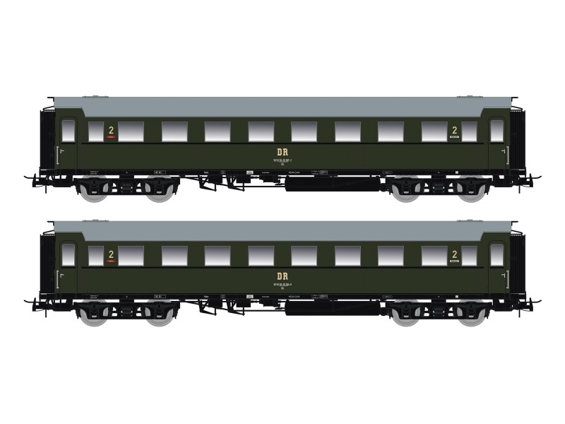 Set dvou osobních vozů 2. třídy C4Ü Sa 07, DR, IV. epocha, s osvětlením, H0, Saxonia 87197