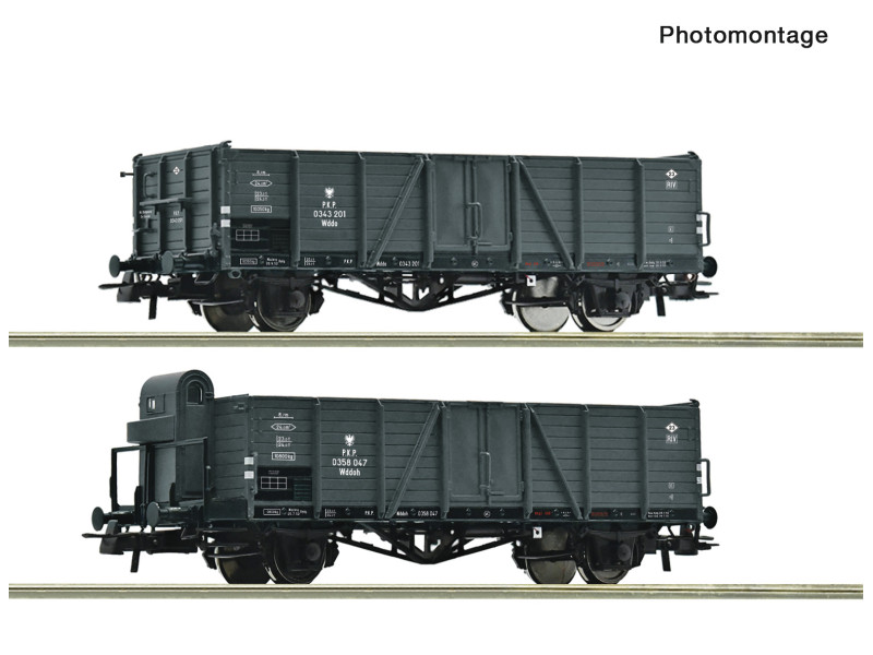 Set dvou otevřených dvounápravových vozů Wddo(h), PKP, III. epocha, H0, Roco 6600216