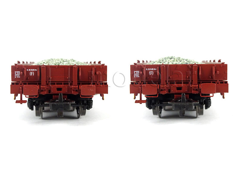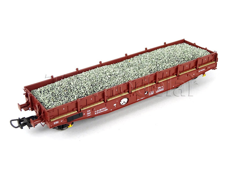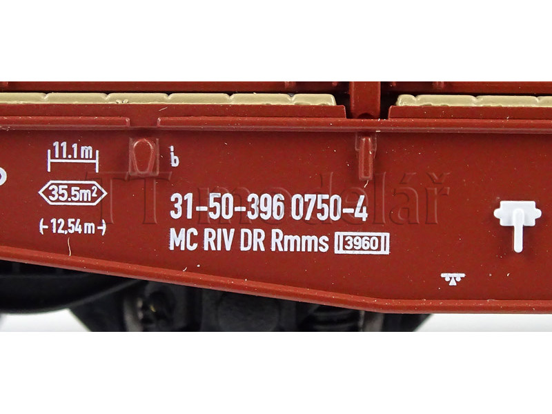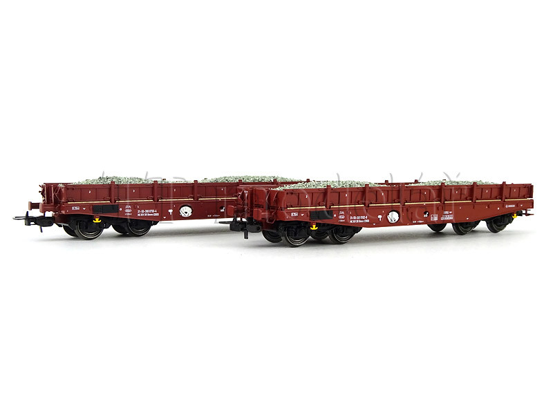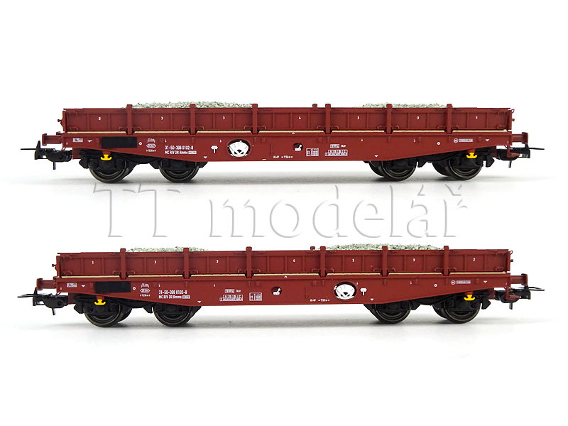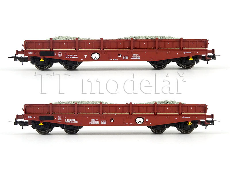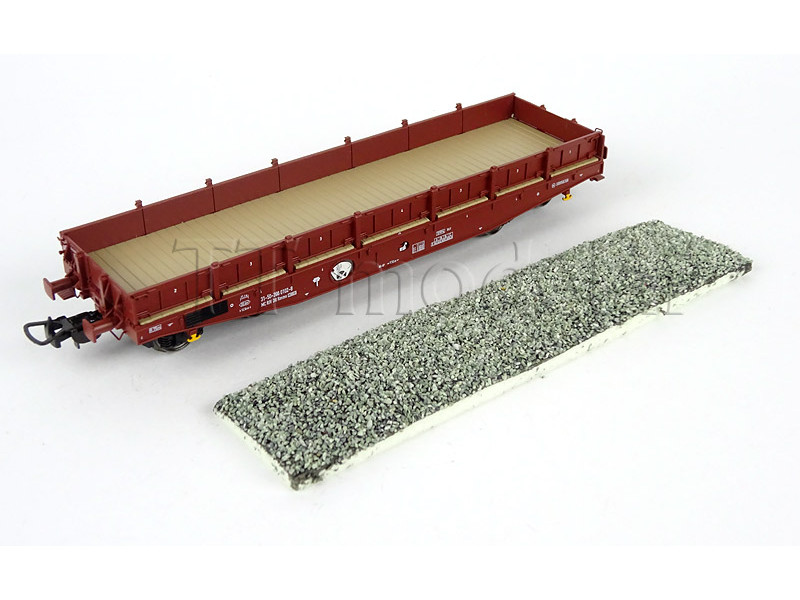 Set dvou plošinových vozů Rmms 3960, s nákladem železničního štěrku, DR, IV. epocha, H0, jednorázová série, DOPRODEJ, Tillig 70070 E