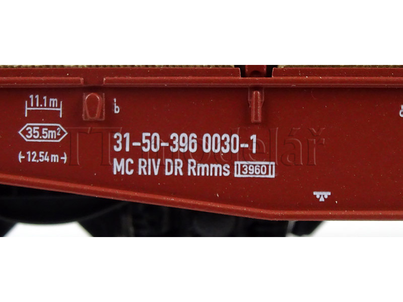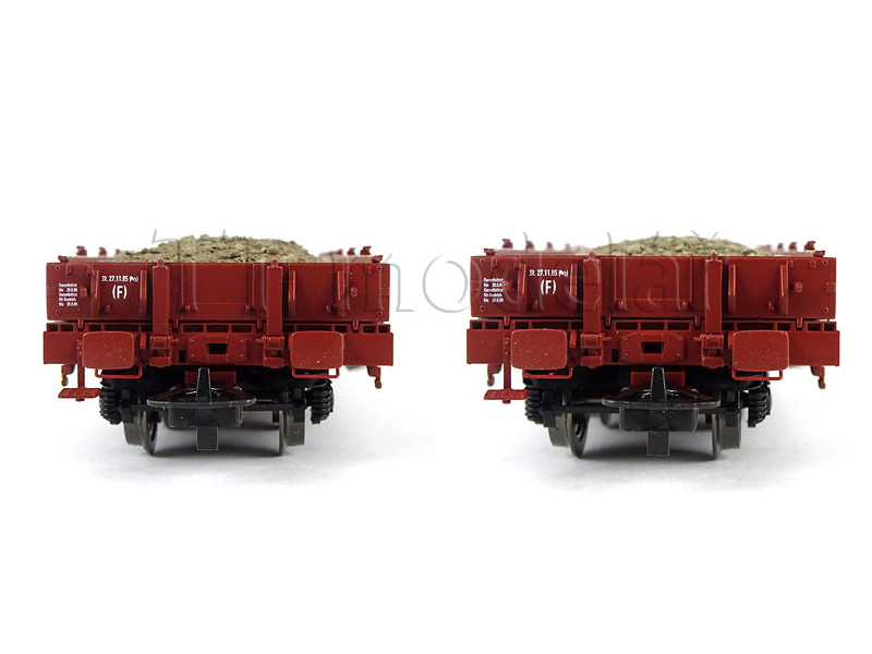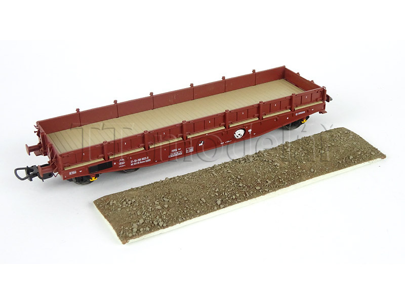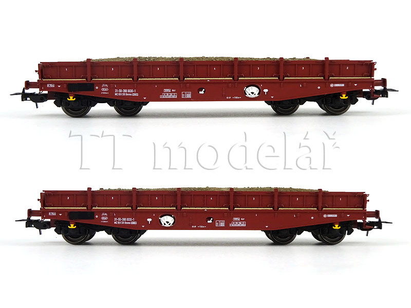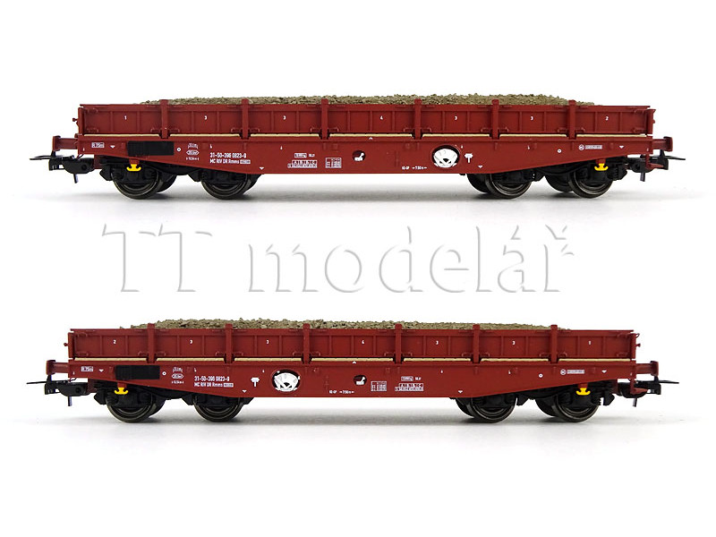 Set dvou plošinových vozů Rmms 3960, s nákladem železničního štěrku, DR, IV. epocha, H0, jednorázová série, DOPRODEJ, Tillig 70070 E