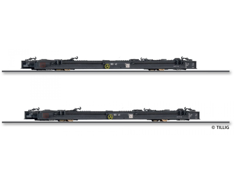 Set dvou úzkorozchodných plošinových vozů řady Rf4, Brohltal-Schmalspur-Eisenbahn GmbH, V. epocha, H0m, jednorázová série 2026, Tillig 15976