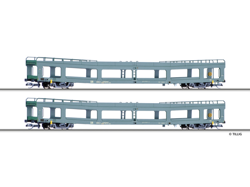 Set dvou vozů DDm pro přepravu automobilů, DR, IV. epocha, TT, Tillig 01135