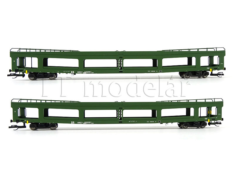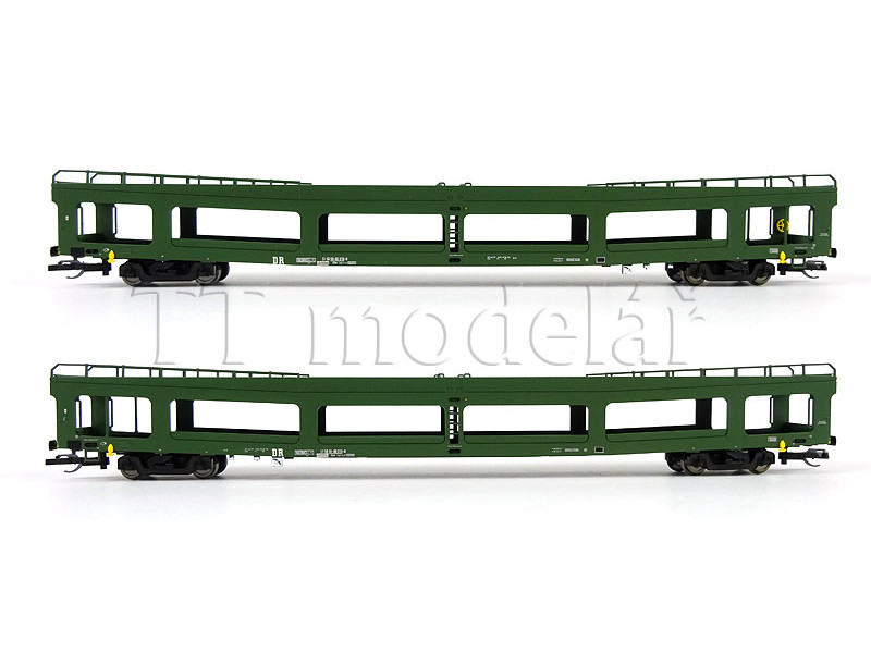 Set dvou vozů DDm pro přepravu automobilů, DR, IV. epocha, TT, Tillig 01135
