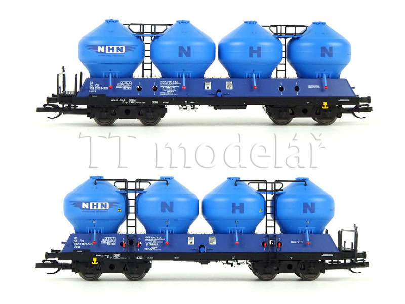 Set dvou vozů na sypké látky Uacs 451.1, „NHN spol. s.r.o.“, zařazeno u ČD, V. epocha, TT, Tillig 01114