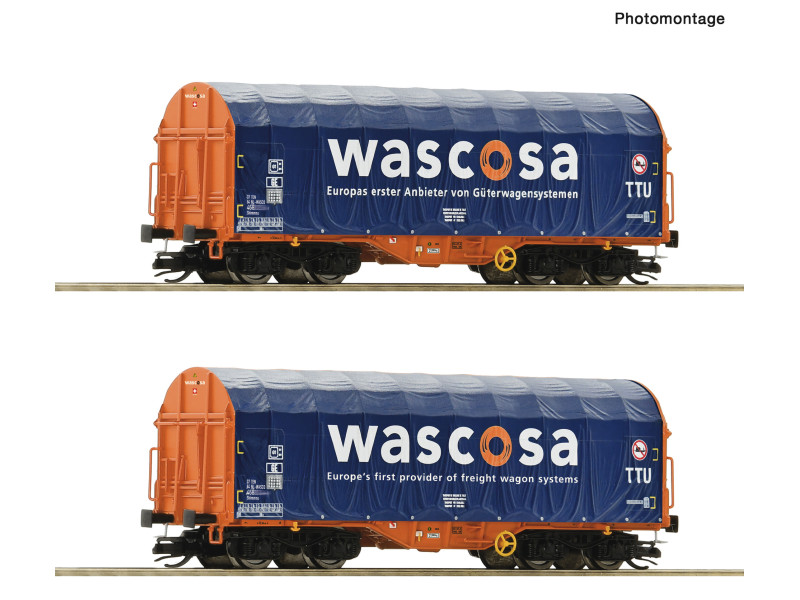 Set dvou vozů Shimmns s posuvnou plachtou, Wascosa, VI. epocha, TT, Roco 6680006-1