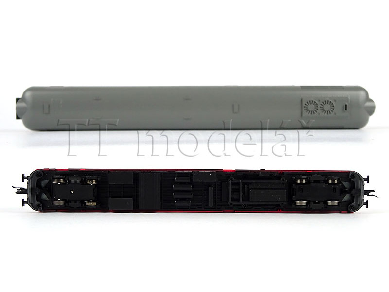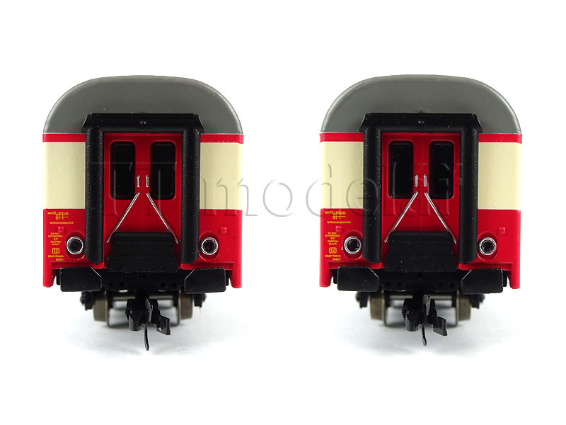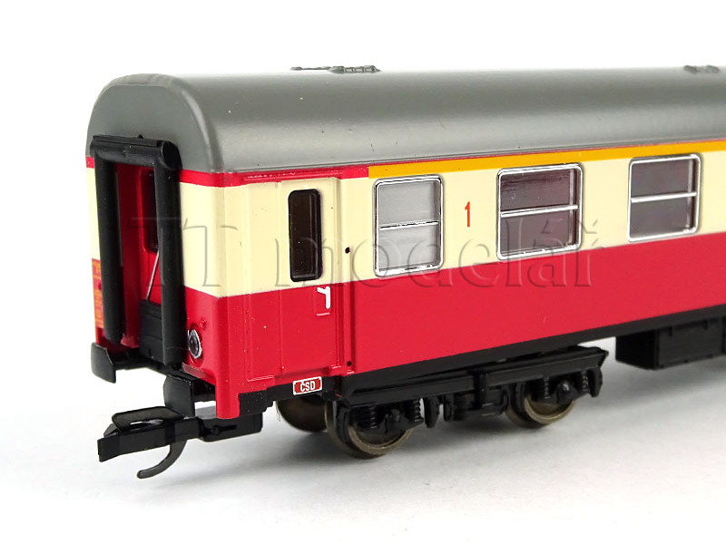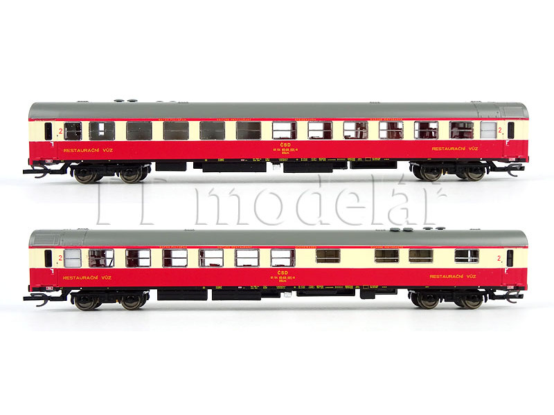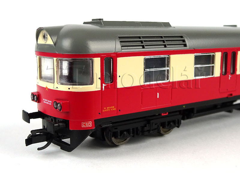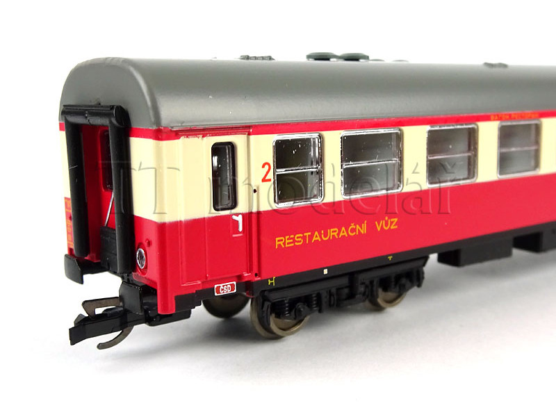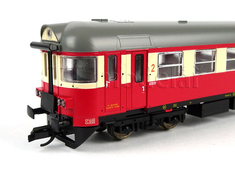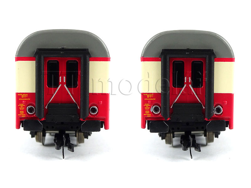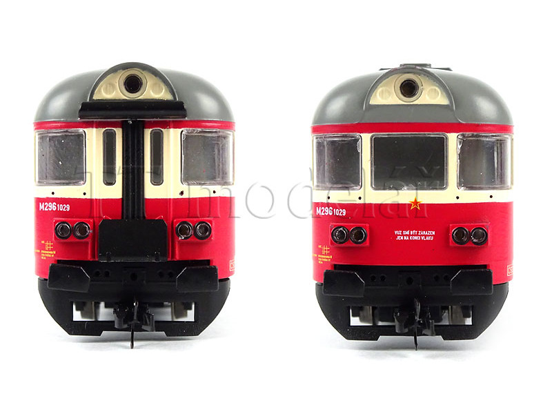 Set motorového vozu řady M 296.1029 pro mezinárodní provoz na rychlíku Vindobona 1970 + 2x vozy (Aam a BRam) Model je vybaven rozhraním Plux16, motor se setrvačníkem, řízené osvětlení interiéru, osvětlení červená/bílá. Vozy vybaveny osvětlením. Odlišný odstín červené než u serie Vindobon před 2 roky.