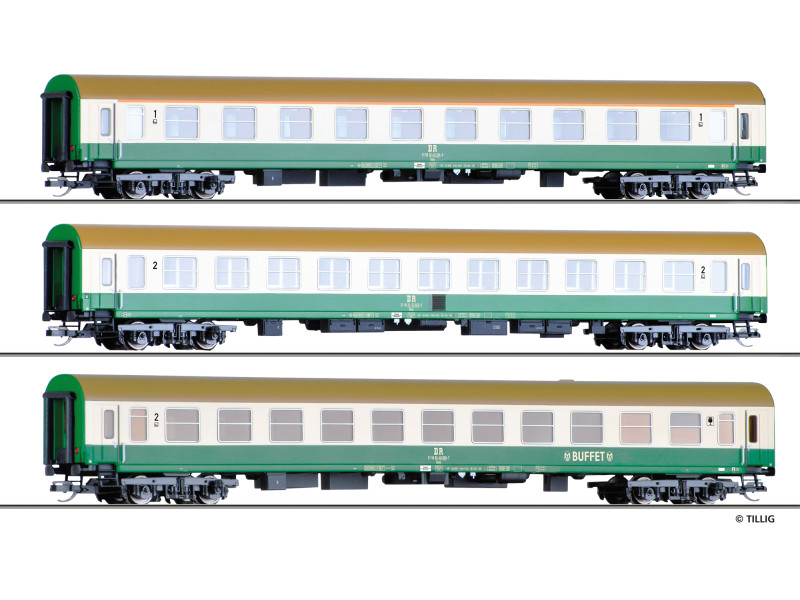 Set tří osobních vozů, DR, typ Halberstadt, IV. epocha, TT, Tillig 01124