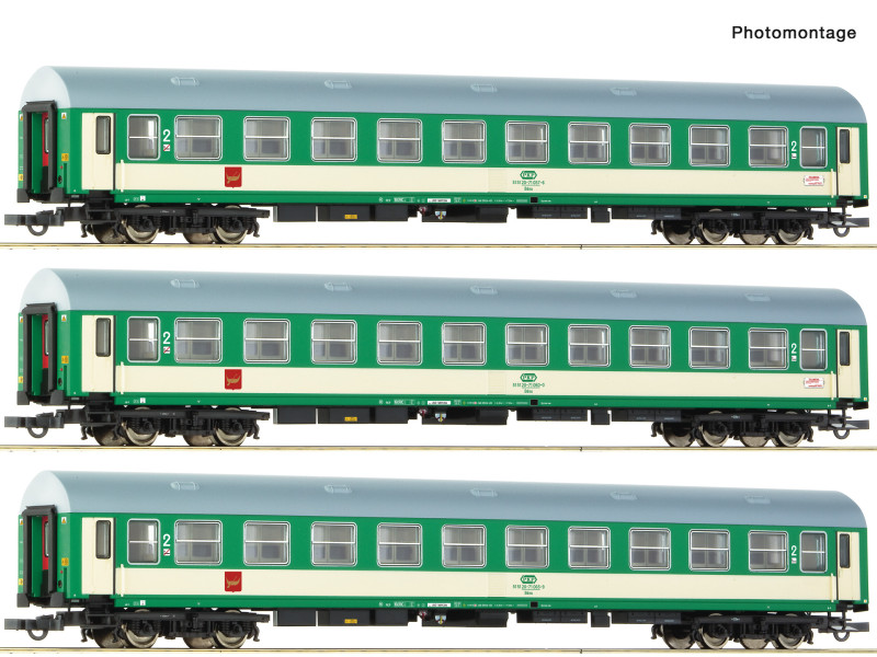 Set tří osobních vozů „Telimena“ řady Bdnu, typ Y/B-70, PKP, V. epocha, H0, Roco 6200229