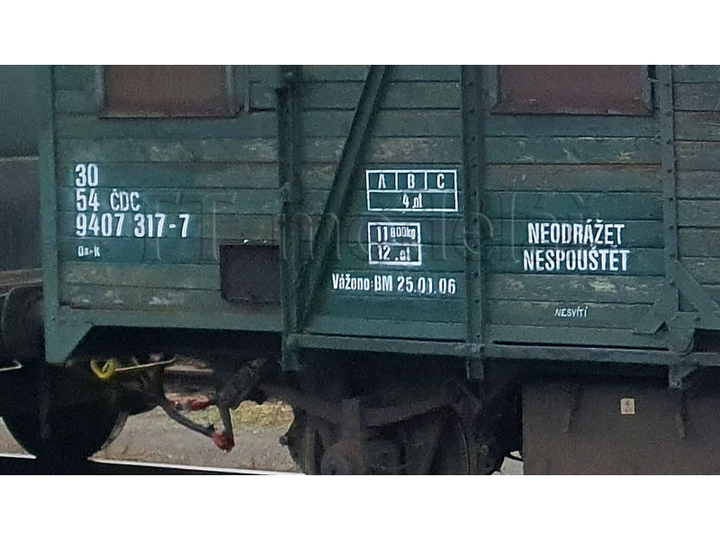 Služební vůz řady Daa-k, ČD Cargo, záplaty, bílé písmo, dom. st. Brno-Maloměřice, VI. epocha, TT, Loco M2507