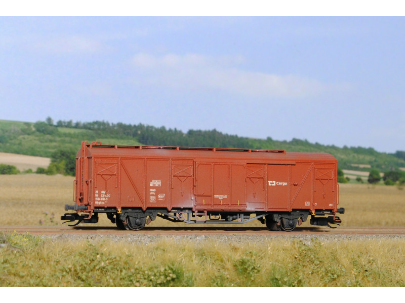 Kompletní stavebnice krytého vozu vyráběného ve vagonce Česká Lípa. Stavebnice představuje vůz v původním stavu skříně. Obsahuje plastikové výlisky na sestavení modelu včetně kinematik, spřáhel, kvalitních soustružených kovových dvojkolí, kovové lepty, závaží a obtisky s dvojicí provozních čísel. Provozovatel ČD/ČD cargo, V.-VI. epocha.