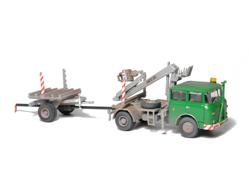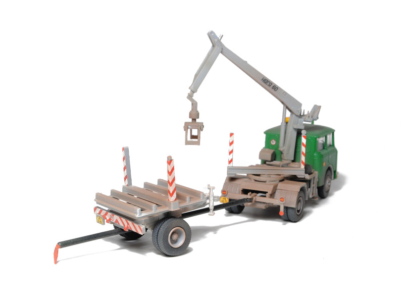 Kompletní plastiková stavebnice oplenové soupravy s hydraulickou rukou HARA 60. Obsahuje probarvené plastikové výlisky na sestavení modelu, kovové osičky a sadu obtisků. Tento model lze sestavit zcela bez nutnosti barvení. Sestavený model na fotografiích je opatřen nátěrem a přiloženými obtisky.