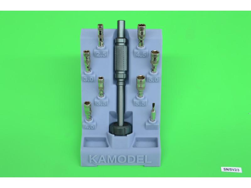 Stojanová sada šroubováku se 7 vyměnitelnými vnějšími šestihrannými bity (2.5-5.5mm) pro přesnou práci, KaModel SN/SV2/3