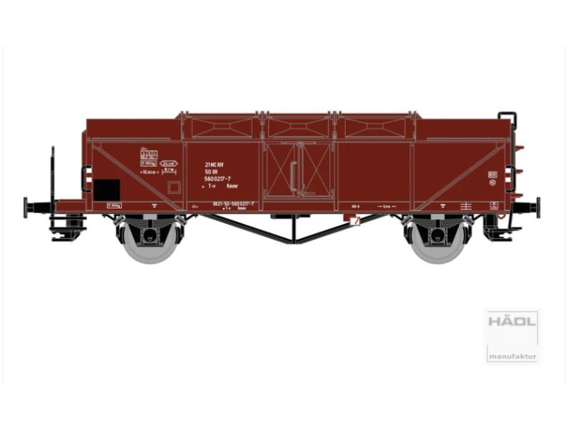 Vůz s odklopnou střechou řady Kmmr, s brzdařskou budkou, DR, III. epocha, TT, Haedl 116413
