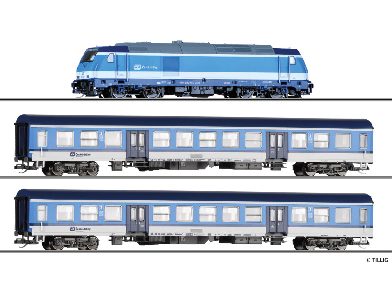 Základní sada TT s osobním vlakem a motorovou lokomotivou TRAXX ,ČD, VI. epocha, TT, Tillig 01506