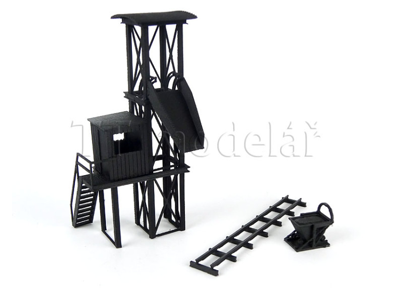 Rozměry: Stavební přívěs: 58 x 22 x 35 mm Zásobníky na uhlí: 61 x 32 x 15 mm Pás..