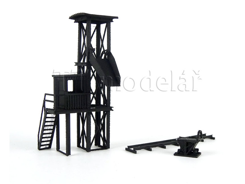 Pískování - věž se zásobníkem písku a zděnou budkou. Rozměry: 22 x 22 x 84 mm, 76 x 58 x 4..
