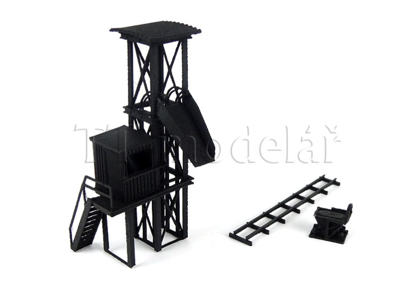 Zauhlování s manuálním jeřábem pro přepravu košů s uhlím, s kůlnou, s koši a atrapami lamp. Rozměry:..